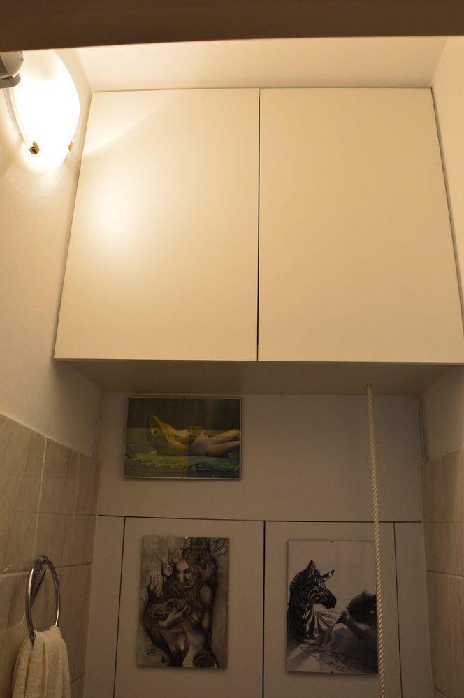 Toalett szekrény, lefelé túlnyúló ajtókkal, foggantyúk nélkül